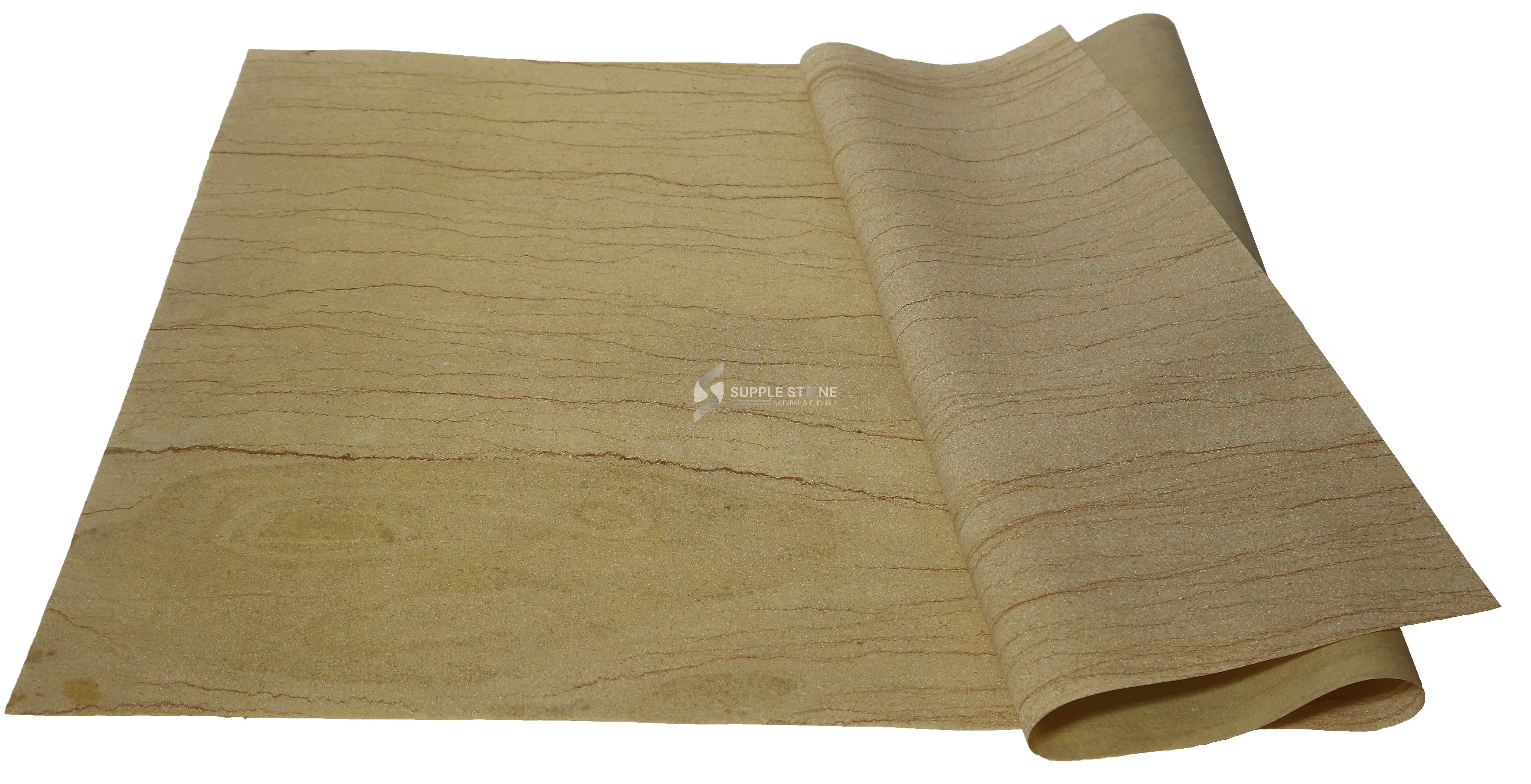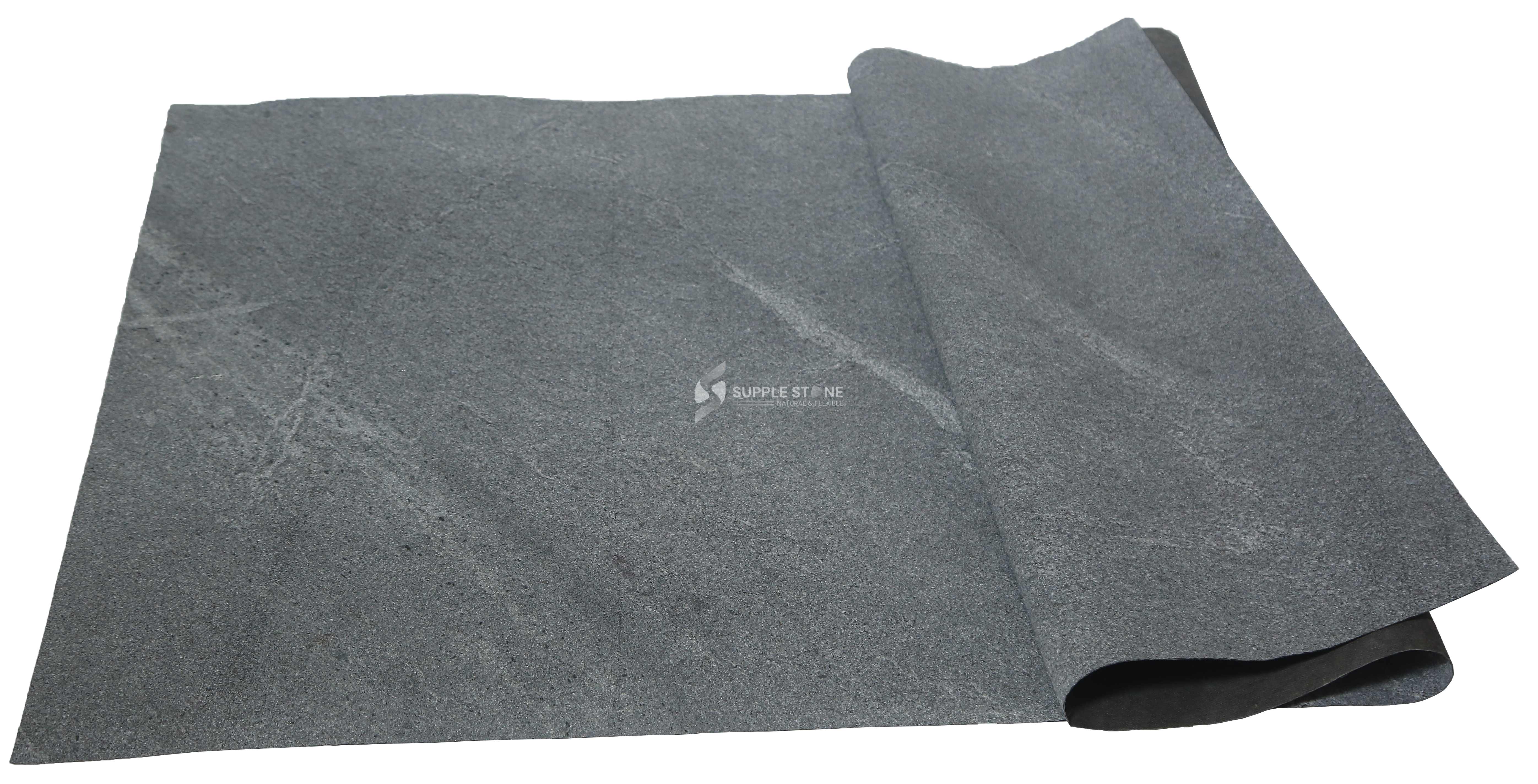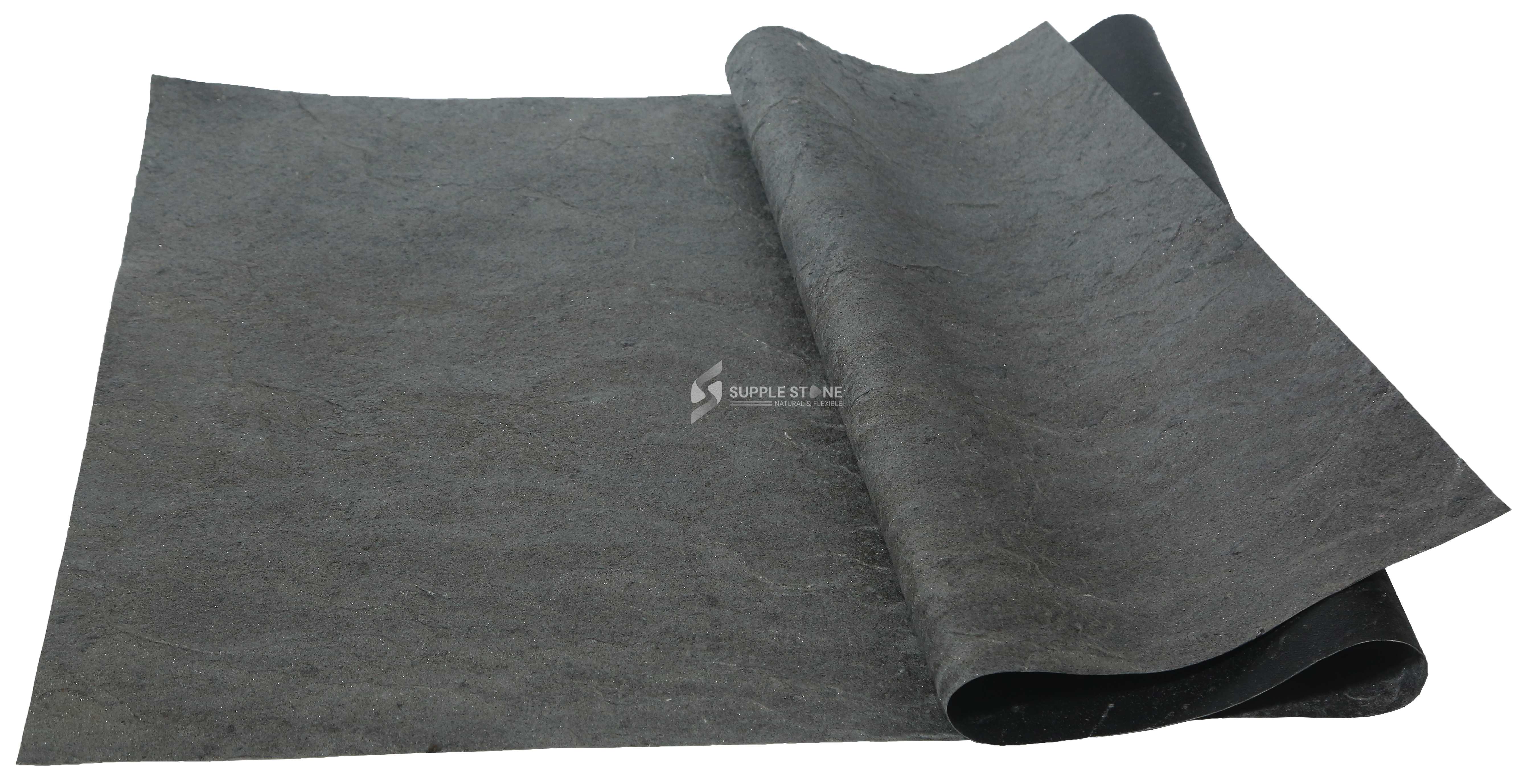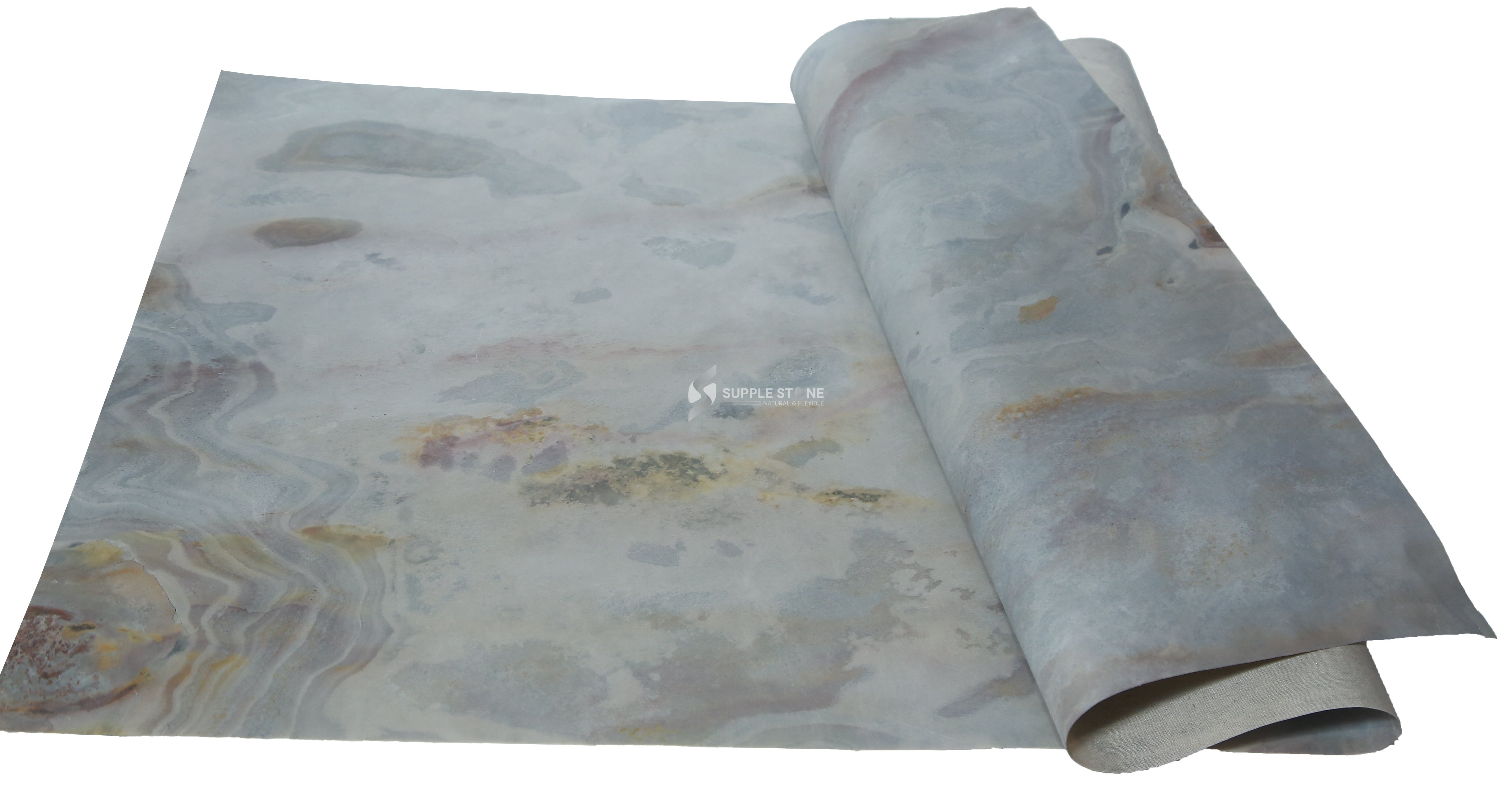 Burning Forest Copper features a vibrant red base with a shiny, high-quality finish, creating a warm and dynamic atmosphere. veneer sheet, made from layered stone, showcases natural variations like color differences, quartz veins, and slight chipping.